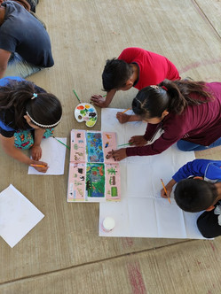 También compartimos con ustedes la alegría y las sonrisas de niñas y niños en la Casa de las Mujeres en Chalchihuitán en donde ahora, gracias al donativo del Ingeniero Eduardo Solorzano, el taller guiado por Alejandra Segoviano está creando más trabajos de pintura en colectivo.