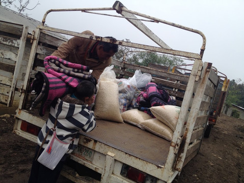 Con la ayuda de la tomatona de Cáritas, transportamos cobijas, alimento enriquecido a base de amaranto, maíz, frijol, azúcar, jabón y otras delicias.